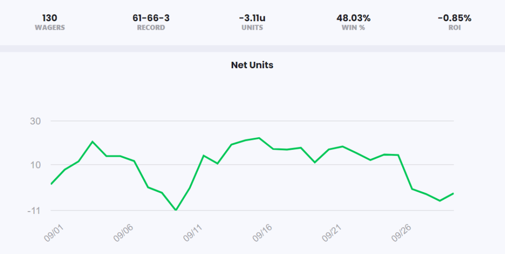 | 9/30 | MLB | Cincinnati Reds @ Atlanta Braves | 3 units on Cincinnati Reds ML | +120 | L | -3u |