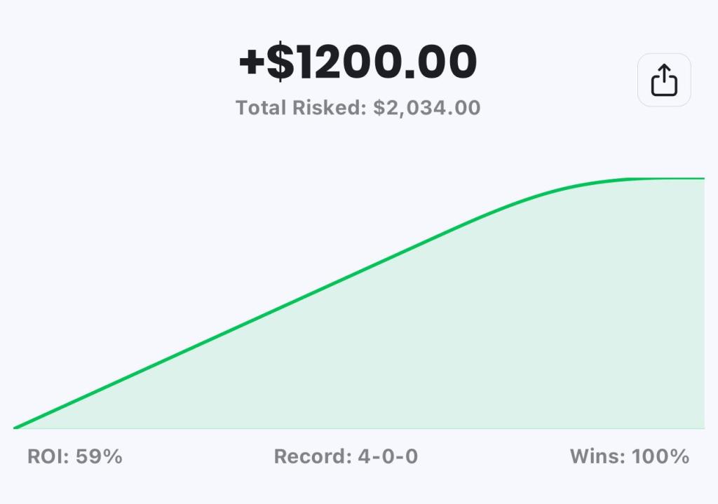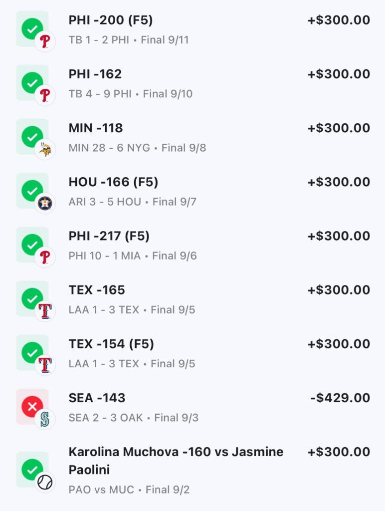 We also had 2 UFC bets, 1 WTA bet, and 1 NCAAF bet, winning all of those wagers as well.
